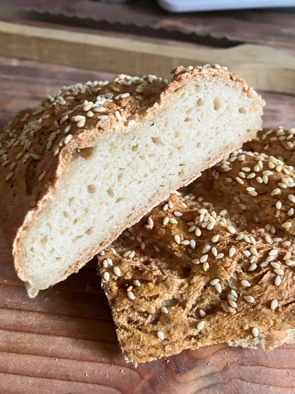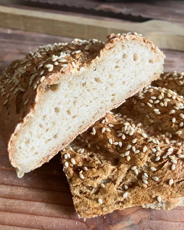 Enjoy these soft and oh so delicious gluten free baguette (my favorite for PB&J!) *made with or without sesame seeds