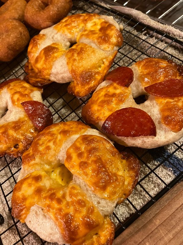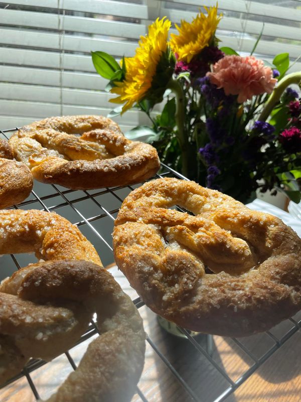 Enjoy four soft pretzels with the toppings of your choice: salted, sesame seeds, turbinado sugar, Coby jack or simply plain