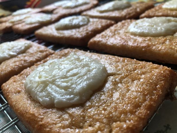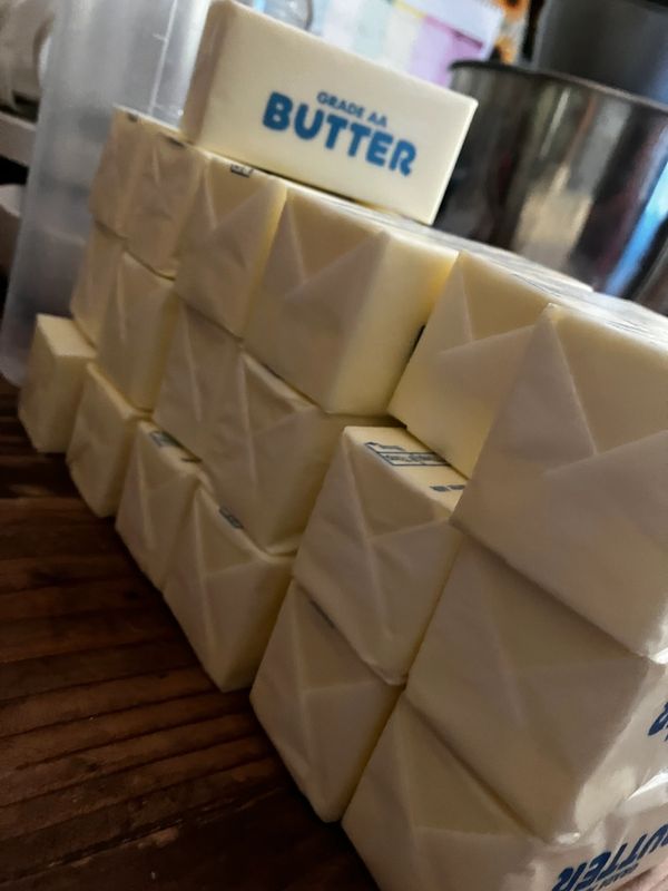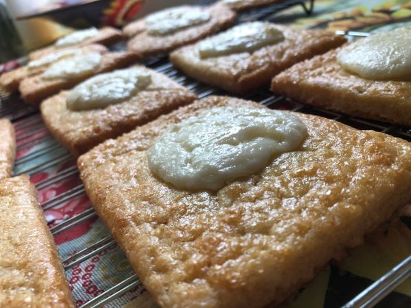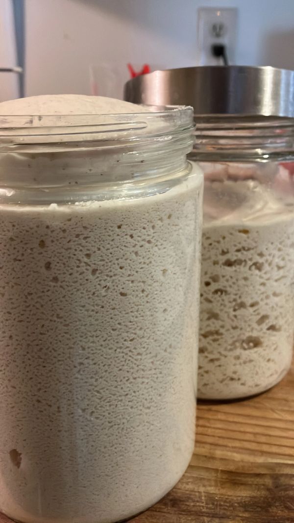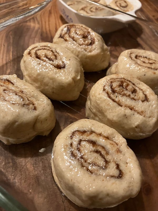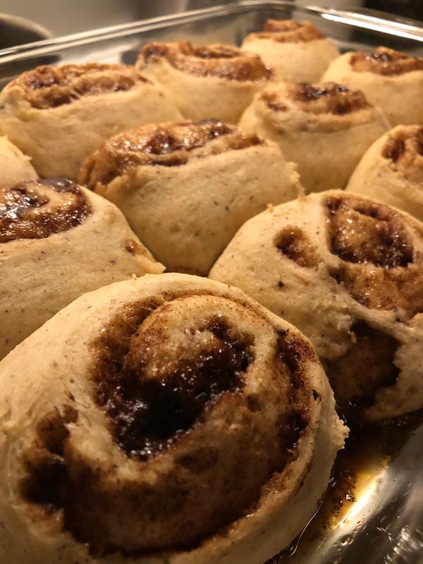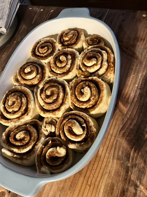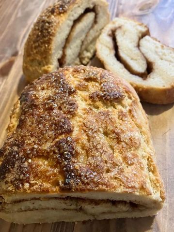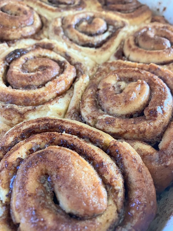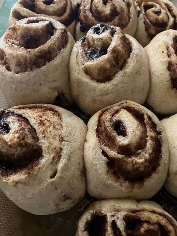Our Cinnamon Roll dough is made with Julia’s home-made Gluten Free Sourdough Starter, Miss Glitter Sparkles. Miss Glitter Sparkles is fed and used at her peak. Then the dough is fermented 24 hours in the fridge before rolled out and formed into rolls. Then the rolls are then proofed another 4 hours on the counter before being baked and sold fresh daily.