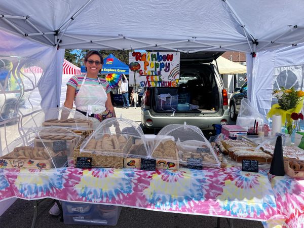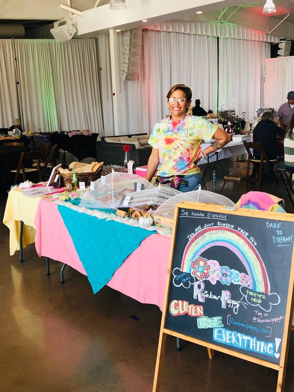 I am a very passionate Rainbow and Unicorn old soul. I take pride in NOT only my VERY colorful and playful booth but also in creating each and every goodie with so much love. From measuring every ingredient, to baking, packaging, labeling, and handing (sometimes delivering) every order. Rainbow Poppy is a Gluten Free Micro- Bakery based in MY Gluten Free Home Kitchen. It's ran everyday (from running errands, advertising, social media content, sales, packaging and so much more like TAXES! AARR!) ALL by ME! (Julia)