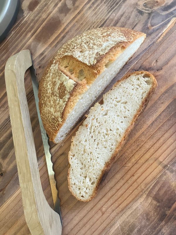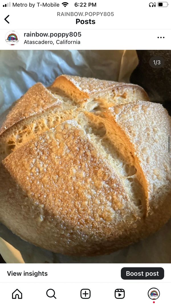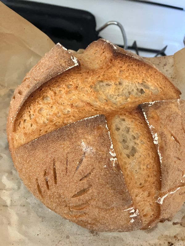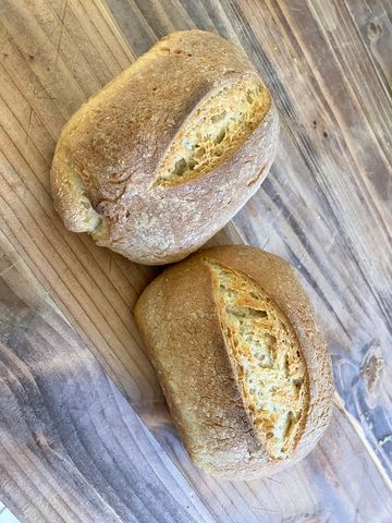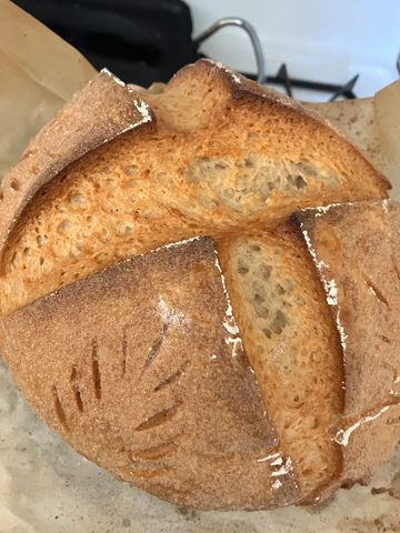 Gluten Fr6e Sourdough Boule is made with Julia’s home-made Gluten Free Sourdough starter, Miss Glitter Sparkles. Miss Glitter Sparkles is fed and used at her peak. This Gluten Free Sourdough Boule is then Fermented 4 hours on the counter followed by a 24 hour fermentation in the fridge. This Boule has a nice crust with a nice soft and moist inside. 😋