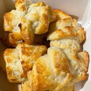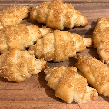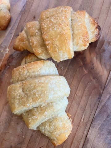 Flakey, airy, buttery layers, topped with turbinado sugar- Enjoy 5 Mini Gluten Free Croissant Puffs