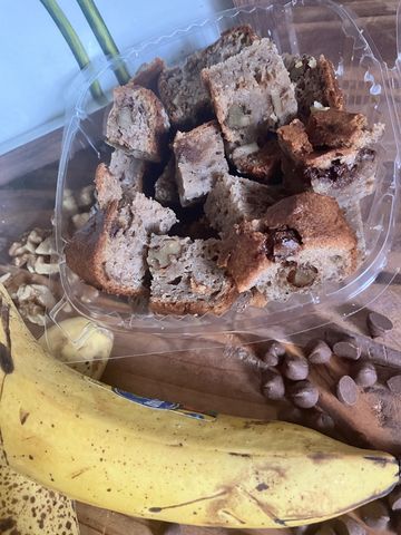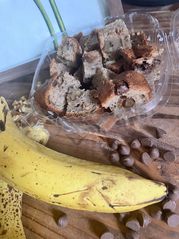 Delicious Gluten Free Banana bread with walnuts and chocolate chips (can be made without chocolate chips upon request)